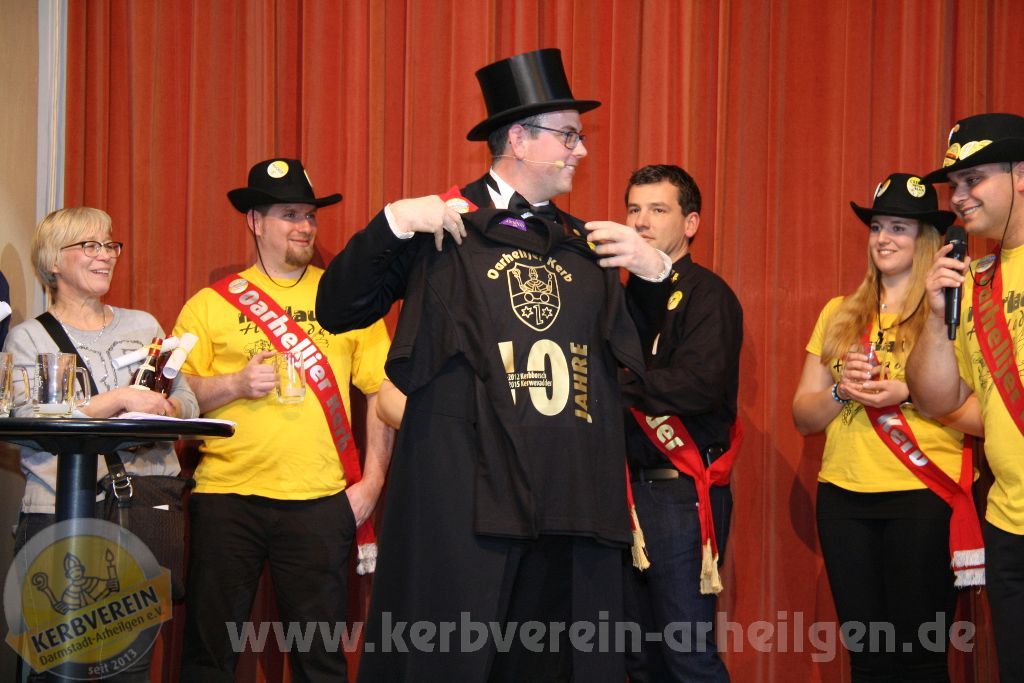 Auch im Jahre 2015 konnte ein Seniorennachmittag bei kostenfreiem Kaffee mit Kuchen und einem bunten Rahmenprogramm dargeboten werden. Jedes Jahr ist es erstaunlich, welche Ausdauer die Seniorinnen und Senioren aus Arheilgen aufweisen, denn sie beobachten zunächst ein abwechslungsreiches Bühnenprogramm und lauschen anschließend voller Aufmerksamkeit der Kerbrede, so dass auch die auf der Bühne stehende Kerbmannschaft, welche die Rede auch erst am Freitag hören, neue Strophen entdeckt, die am Vorabend untergegangen sind.