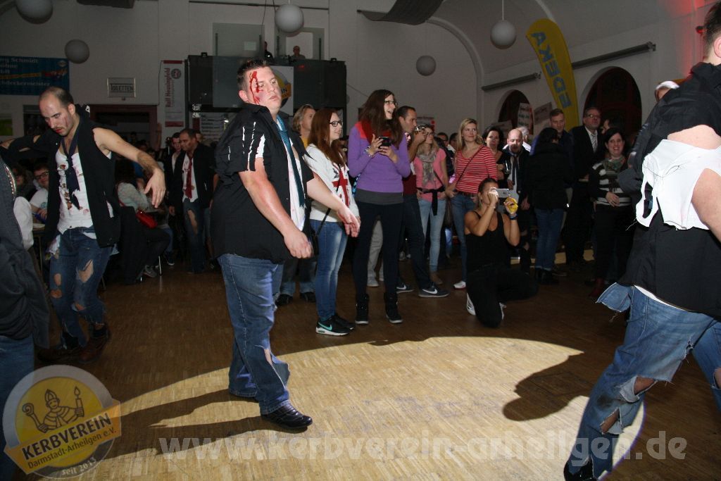 Kurz vor Halloween wurde es plötzlich noch einmal dunkel und gespenstig im großen Saal des Goldnen Löwen. Schuld daran war eine Horde von Untoten, dargestellt durch die Jungs und Mädels von der “Aktiven”, welche nach der Pause durch die Menge wandelte und zunächst etwas angsteinflößend aussah. Letztendlich machte sich aber Begeisterung breit, nachdem man sah, welche Bewegungen auch die Untoten noch erstaunlich gut auf die Reihe bekamen. Nach der lautstark geforderten Zugabe wurde der Löwen anschließend zur großen Konzerthalle umgewandelt, denn nun legte die Band “Shaqua Spirit” auf und sorgte dafür, dass bei passender Musik die Oarhelljer Kerb und das Leben kräftig gefeiert werden konnte, ehe man zur frühen Morgenstunde dann doch noch den Heimweg antrat.